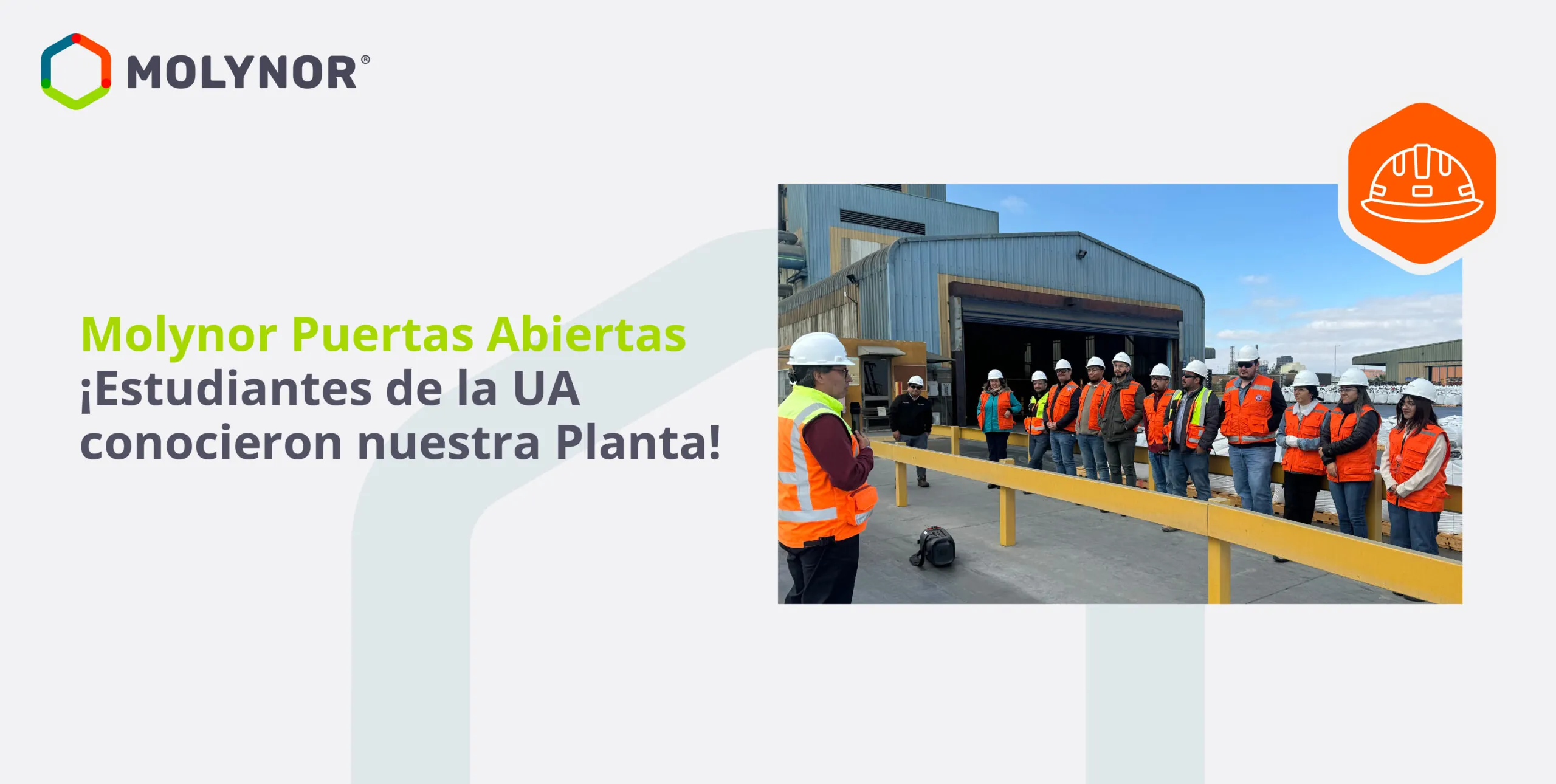 La visita, que se enmarca dentro de las actividades de Molynor Puertas Abiertas, contó con la presencia de 18 estudiantes de la carrera de Ingeniería Civil en Procesos Minerales de la UA, y nos permitió aumentar nuestra presencia de marca en las comunidades educativas.