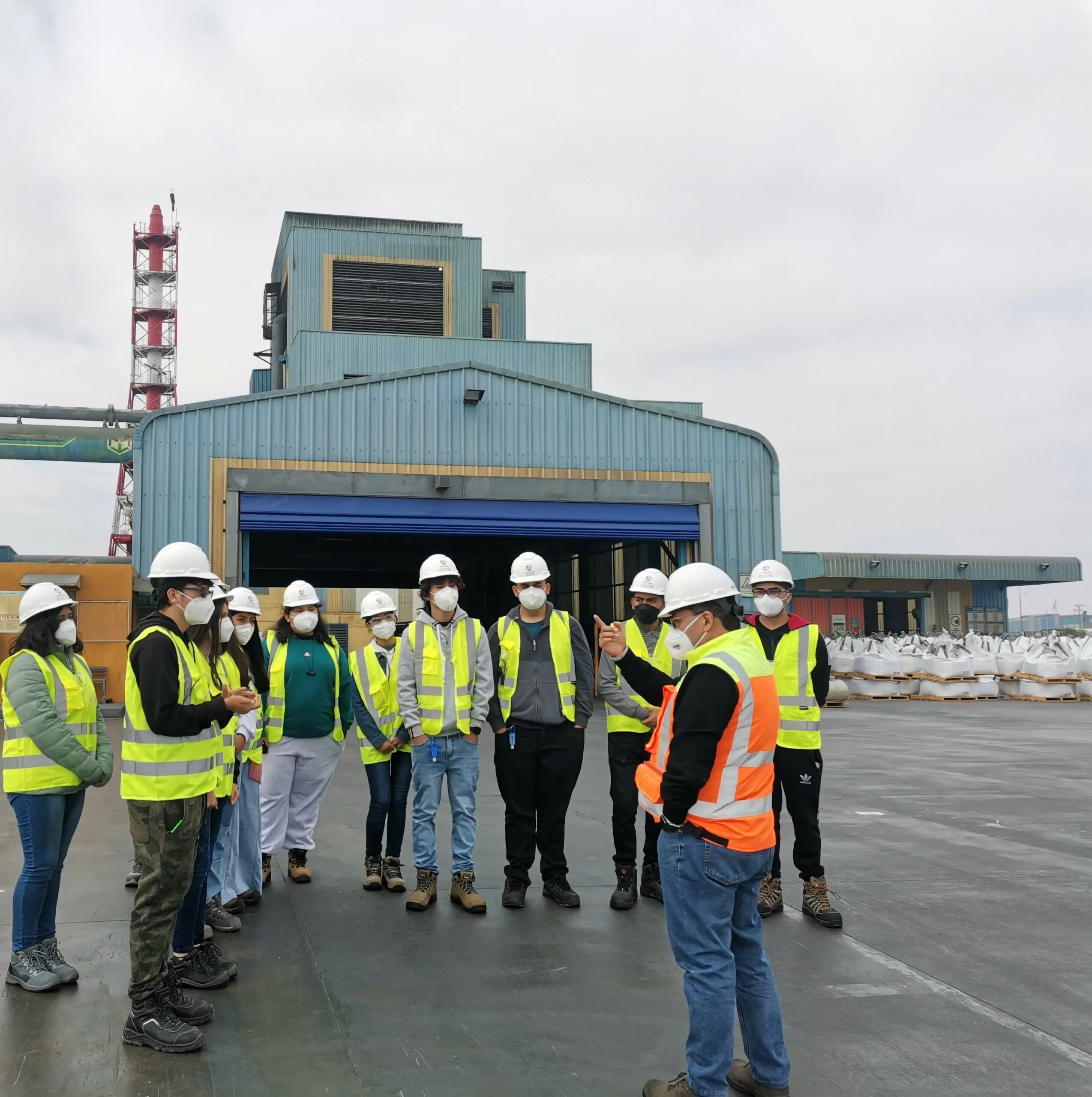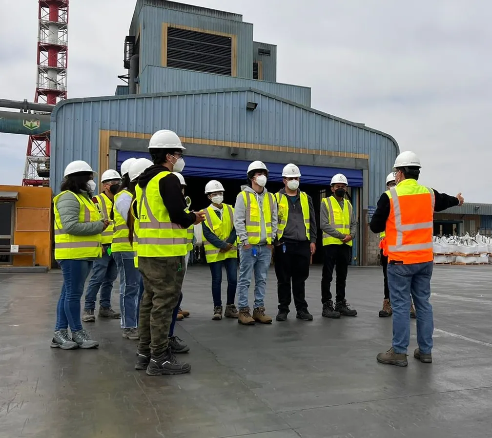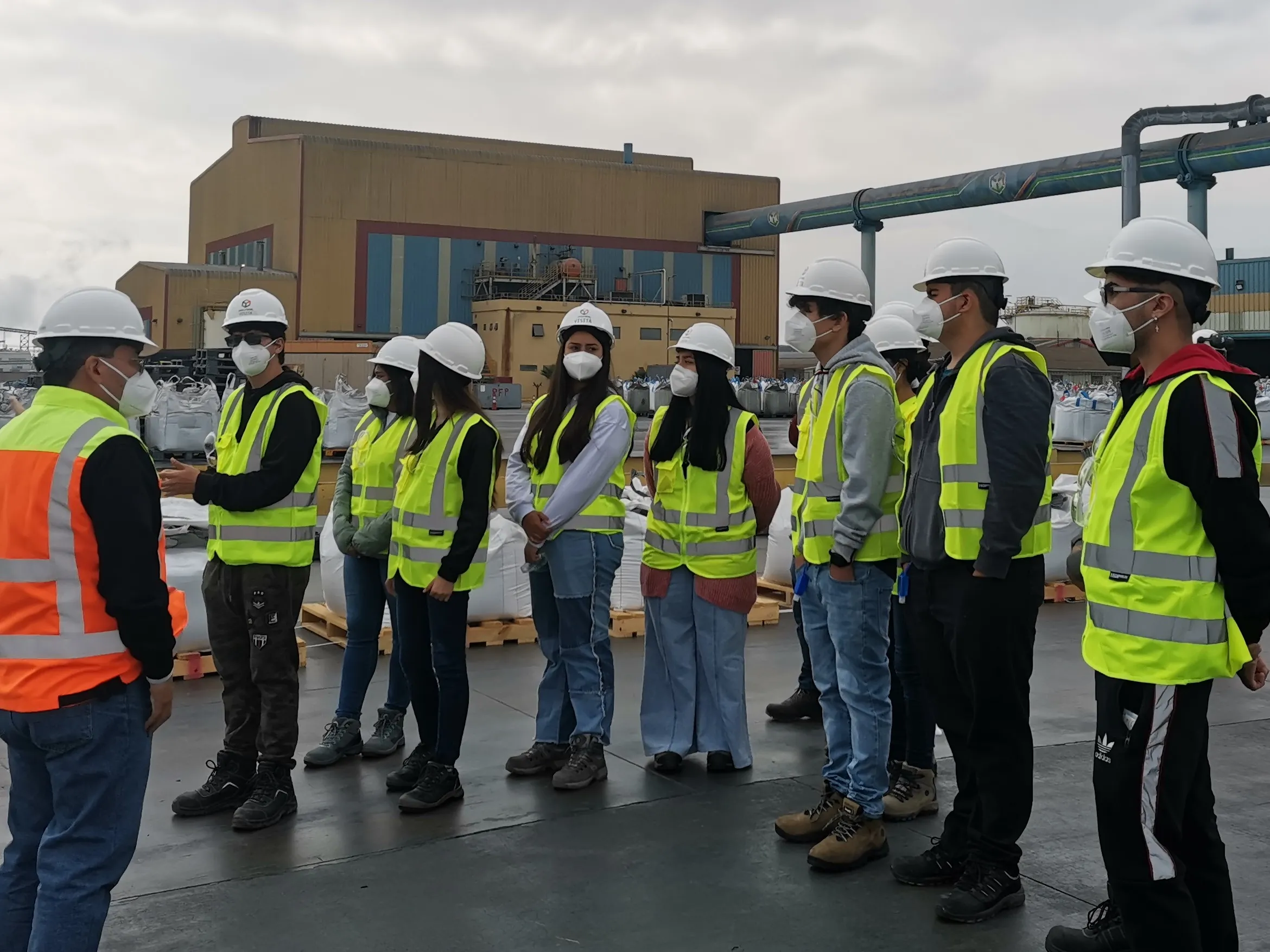 Durante la visita, los estudiantes hicieron un recorrido que incluyó una visita a las áreas de Recepción y Despacho, Lixiviación por Cloruro Férrico, Tostación, Homogenización y Envase, Tratamiento de gases, Muestrera y Laboratorio.