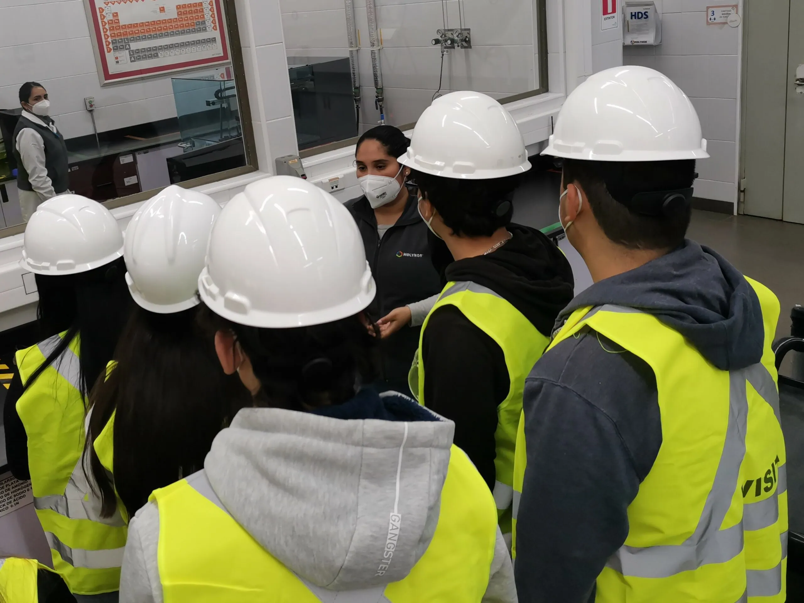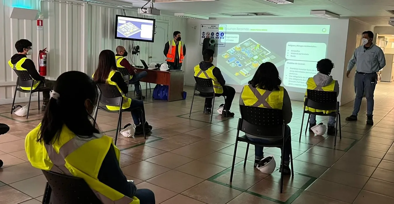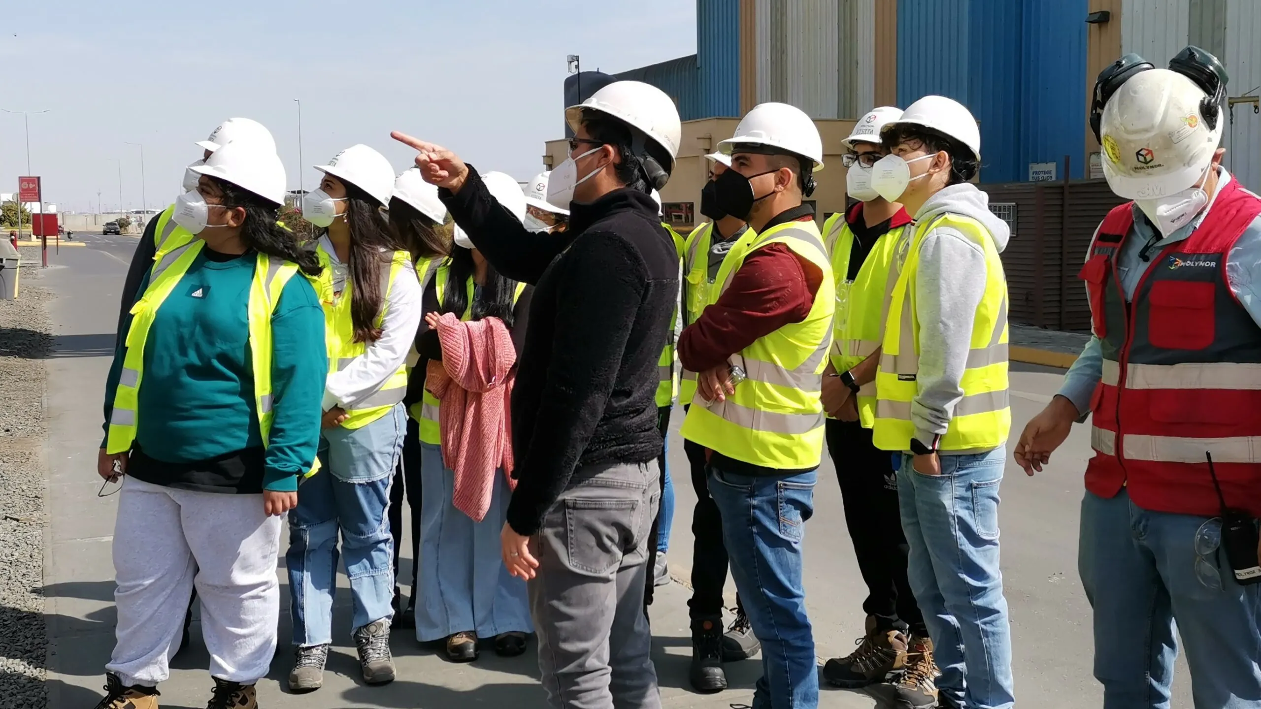 Durante la visita, los estudiantes hicieron un recorrido que incluyó una visita a las áreas de Recepción y Despacho, Lixiviación por Cloruro Férrico, Tostación, Homogenización y Envase, Tratamiento de gases, Muestrera y Laboratorio.